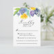 Vibrantes flores coloridas en acuarela en tonos de amarillo canario, ciruela púrpura y azul marino adornan la parte superior de esta alegre y elegante tarjeta de respuesta de boda. Las fuentes clásicas serif se modernizan con acentos de tipografía de escritura juguetona y notas de amarillo en todo el diseño. Un diseño de acuarela de amarillo intenso adorna el reverso de esta tarjeta.