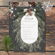 Este diseño presenta un ramo rústico de pino verde y piña sobre un fondo de carbón vegetal con flores blancas. Se acentúa con un resguardo blanco brillante para ilustrar la magia de las hermosas vacaciones de invierno. Ideal para Navidades o bodas de invierno. Esta tarjeta es parte de la suite Boda Boho Green Pine Winter Sparkle creada por Simply Farmhouse Press.