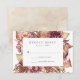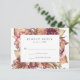 Elegantes y únicas tarjetas RSVP de boda floral con tu fecha y personalizado RSVP acepta/declina frases enmarcadas por flores de color burdeos, violeta, rubia y coral y frondosos follajes en ricos tonos de tierra beige y marrón. La tarjeta de respuesta del boda floral se revierte a un fondo acuático beige claro. Diseñado para coordinar con nuestra colección de bodas Boho Desert Floral.