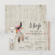 Boho floral y plumas antler cráneo de vaca boda rústico de madera opción rsvp. Este rsvp bohemio estilo bohemio cuenta con un cráneo de vaca con flores y plumas.