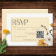 Celebra tu historia de amor bañada en el cálido resplandor de un prado dorado. Nuestra increíble tarjeta de respuesta boda con código QR cuenta con vibrantes ramos de acuarela. El oro amarillo dorado besado por el sol, el amarillo carnicero y las flores marrones doradas se mezclan con delicadas margaritas blancas, flores blancas y elegantes lirios amarillos. Los tonos alegres de los cardos secos y de las hierbas beiges suaves le dan un toque rústico de encanto, mientras que el follaje verde sabio y los sprays de bayas negras le dan un toque de fantasía. Las tipografías alegres pero elegantes complementan perfectamente el diseño, marcando un tono alegre y luminoso para su día especial. Esta encantadora suite capta la esencia de un prado final de verano, invitando a sus huéspedes a compartir la alegría de su amor. Creado por Simply Farmhouse Press.