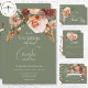 Eleve su día de bodas con un toque de romanticismo bohemio con nuestra exquisita tarjeta de boda floral de color boho con opciones para cenar. En el pináculo de la elegancia, un delicado rociado de óxido de terracota y mamáes blandas de melocotón, entrelazado con cremosos rosas de melocotón y acentuado por eucaliptos verdes de salvia y follaje, es la mejor de esta invitación. En un entorno verde sabio y sereno, nuestro cremoso texto blanco añade un encanto atemporal, invitando a sus invitados a unirse a la celebración de su historia de amor. Esta invitación captura sin esfuerzo la esencia de la moda boho, y sienta las bases para un día lleno de calor, alegría y momentos inolvidables. Que la belleza de la naturaleza se entrelaze con la elegancia de su unión, empezando por la invitación perfecta que habla de su estilo y visión únicos. Elija nuestro diseño de boda floral de color boho acuático y embarque en un viaje a un día tan encantador como su amor. Creado por Simply Farmhouse Press.