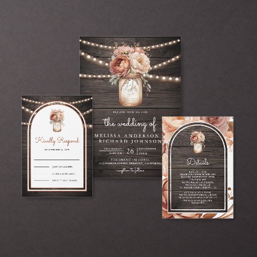 Tarjeta De Confirmación De Asistencia Boho Terracotta Floral Mason Jar Barn Wood Wedding