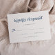 Esta sencilla y boho tarjeta de respuesta rsvp presenta una tipografía polvorienta azul, retro sobre un fondo blanco. Se coordina perfectamente con nuestras invitaciones boho retro bridal, duchas de pareja, bat mitzvah o bar mitzvah.
