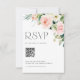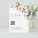 Permita que sus invitados RSVP con esta tarjeta RSVP de boda moderna de personalizable. Cuenta con una acuarela floral de rosas rosas blancas y rosas rubias y peonías con acentos verdes. Personalice esta tarjeta RSVP de código QR agregando los detalles del evento. Esta tarjeta RSVP de boda floral también es perfecta para duchas de novias, cumpleaños y otros eventos.