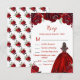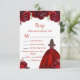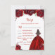 Tarjeta De Confirmación De Asistencia Brunette Hair Princess Red Floral Quinceanera