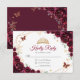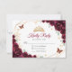 Burgundy gold and white floral Quinceanera RSVP reply card. Features, script font, gold butterflies, watercolor roses and tiara. Perfect for an elegant princess style glam celebration. Personalize with your own details.