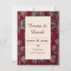invitation sur un fonds de broderie fleurie dans les tons rouges, d'inspiration medievale et renaissance.