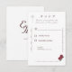 El diseño presenta el formato tradicional para una tarjeta de respuesta boda. El encabezado se muestra en un elegante tipo de letra Nuptial, mientras que el cuerpo se enmarca con un florido adorable como borde. El símbolo tradicional de la cruz y los anillos aparece en la esquina inferior izquierda, mientras que la imagen de rosas delicados grava la parte inferior derecha. El texto y el borde aparecen en un color burdeos-rosa. También disponible en color plata. Reverso muestra las iniciales de novia y novio enlazados en un elegante tipo de letra Nuptial. Muy elegante. Diseñado para coordinar con la suite Boda católica de Rosas finos.