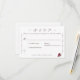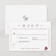 El diseño presenta el formato tradicional para una tarjeta de respuesta boda. El encabezado se muestra en un elegante tipo de letra Nuptial, mientras que el cuerpo se enmarca con un florido adorable como borde. El símbolo tradicional de la cruz y los anillos aparece en la esquina inferior izquierda, mientras que la imagen de rosas delicados grava la parte inferior derecha. El texto y el borde aparecen en un color burdeos-rosa. También disponible en color plata. Reverso muestra las iniciales de novia y novio enlazados en un elegante tipo de letra Nuptial. Muy elegante. Diseñado para coordinar con la suite Boda católica de Rosas finos.