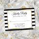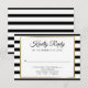 Una elegante tarjeta de respuesta con un borde de falso foil dorado que enmarca los detalles de su evento en tipografía chic sobre un fondo clásico a rayas en blanco y negro. Personalice con los detalles de su evento especial. Diseñado por Thisisnotme©