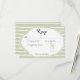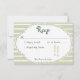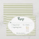 This whimsical coastal wedding response card without dinner choices features a lace border, champagne flutes, and stylish sage green stripe background. Perfect for a beach or California destination wedding. Created by Simply Farmhouse Press.