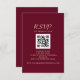 Elegante, moderno, sencillo, contemporáneo, minimalista, dorado y burdeos tarjeta RSVP de boda con código QR, sitio web y una pareja única de aves amorosas dibujando al fondo.