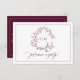 Invite a sus invitados a responder a su invitación nupcial con estilo con esta tarjeta RSVP de Boda de Escudo de Borgoña. El diseño de la corona con hojas de borgoña es elegante y llamativo, mientras que el monograma moderno aporta un toque personal. El detalle de caligrafía es el toque final perfecto. Los huéspedes pueden indicar su intención a través del enlace QR Code en la parte posterior de la tarjeta. Póngase en contacto con el diseñador para obtener productos coincidentes. Ver suite aquí: https://www.zazzle.com/collections/burgundy_leafy_crest_monogram_wedding-119160969675221295 Copyright Anastasia Surridge para Elegant Invitaciones, todos los derechos reservados.