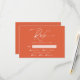Asegúrese de que el proceso RSVP sea fluido con esta moderna y elegante tarjeta Verona Sunset RSVP. El cálido y acogedor matiz naranja marca un tono sofisticado, complementado con un elegante guión de caligrafía. Esta tarjeta ofrece la máxima comodidad: los huéspedes pueden responder utilizando el método tradicional de correo electrónico, seleccionando su elección de comida (pollo, ternera o vegetariano), o pueden enviar RSVP en línea inmediatamente escaneando el código QR en la parte posterior. Este enfoque de doble opción, combinado con el diseño minimalista de la tarjeta, garantiza tanto el estilo como la eficiencia. Personalizar la tarjeta con sus nombres, fecha límite de RSVP y cualquier detalle adicional.