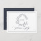 Tarjeta De Confirmación De Asistencia Código QR Navy Escudo de Leafy Azul Monograma Boda