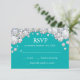 Tarjeta de confirmación de asistencia con brillo de diamante verde azulado y plata