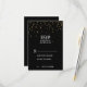 Esta elegante tarjeta de confirmación de asistencia con confeti dorado sobre fondo negro es perfecta para cualquier evento elegante. El diseño presenta confeti dorado brillante falso sobre un fondo negro con caligrafía blanca. Estas tarjetas pueden ser utilizadas para una boda, compromiso, cumpleaños, fiesta de jubilación o cualquier evento o fiesta especial.
