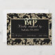 Hermosa tarjeta de confirmación de asistencia de boda con remolinos de purpurina dorada que se puede personalizar con su texto. Seleccione el botón "personalizar" para cambiar el estilo de fuente, el color y el tamaño.