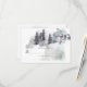 Confirmaciones de asistencia para bodas de invierno con pinos y montañas cubiertas de nieve. La parte trasera tiene un diseño de salpicadura de acuarela en grises, azules y verdes. Perfecto para una boda en un destino de resort de esquí o una comunidad montañosa. Las casillas de la plantilla son fáciles de personalizar con su propia información.