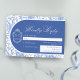 Delft blue floral RSVP response card, designed in a refined blend of chinoiserie and French toile de Jouy style. The soft botanical illustrations frame an arched layout featuring an elegant wedding crest monogram, perfect for couples who love vintage, historic, and European-inspired aesthetics. Classic script typography pairs beautifully with the ceramic-blue palette, making this design an effortless nod to the tradition of “something blue.” Fully customizable with your RSVP date, guest name and menu choice, it’s an exquisite choice for any romantic or sophisticated wedding theme.