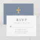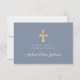Tarjeta de respuesta de cruz religiosa azul polvorienta niño primera comunión