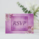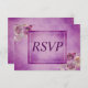 Una bonita invitación de RSVP púrpura. Esta tarjeta de respuesta boda con temática de flor morada es apropiada para bodas de todas las estaciones. Con un fondo morado hay una flor morada, "RSVP" está escrito en la parte superior con una bonita fuente morada. La parte posterior continúa con información importante sobre un fondo morado. ¡Personaliza el tuyo hoy!