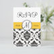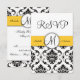 Tarjeta De Confirmación De Asistencia Damascado negro confirmación de boda amarilla