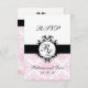 Monogramas elegantes en un adorno diseñado a medida, exclusivo de la Galería de Monogramas, sobre un fondo de damasco vintage rosa y blanco, adornan esta hermosa tarjeta. Chic parisino en su máxima expresión. Tarjeta de respuesta de boda con damasco rosa y monogramas elegantes. Arte y diseño de Elke Clarke ©2011. "Personalízala" con sus nombres, letras de monograma, fecha de boda y texto de la tarjeta de respuesta en esta encantadora tarjeta plana con patrón de damasco. No olvide probar diferentes opciones de papel, cada una aportando su propio "toque" además del diseño.