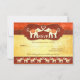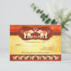 Tarjeta de confirmación de asistencia para invitaciones coincidentes con dos elefantes blancos enamorados, animados por sus familias y tribu. El fondo es una combinación elegante de ocre y burdeos con elementos metálicos. También es posible eliminar la imagen del reverso y utilizar su propia imagen o elegir un color personalizado. Este diseño está inspirado en el arte indio.