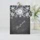 Esta tarjeta de respuesta de boda con aspecto de pizarra negra y blanca, festiva y de moda, tiene capas de copos de nieve azules claros y blancos que coinciden con la invitación de boda de invierno que se muestra a continuación. Sería perfecta para una boda de invierno, boda de Navidad o ducha de novia, una fiesta de aniversario de invierno o un baile de invierno u otro evento. Aquí se muestra en papel básico. Se personaliza fácilmente con su propia información. Hay texto personalizable que puede editar de la manera que requiera. TAMBIÉN tenga en cuenta que todo se imprimirá tal como aparece en su monitor. Zazzle no editará nada por errores tipográficos o desalineaciones, etc., y yo no lo veré una vez que haya realizado el pedido. Si necesita ayuda con su redacción, por favor envíeme un correo electrónico ANTES de realizar el pedido. Si hay otros artículos que necesita para hacer que su evento sea especialmente especial