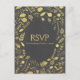 Tarjeta de confirmación de asistencia de boda floral gris carbón y dorado. Artículos coincidentes disponibles.
