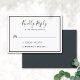 Tarjeta de confirmación de boda minimalista en negro y blanco.