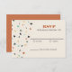 Inspirada en las baldosas de terrazzo italianas, esta tarjeta de confirmación de asistencia de boda tiene un aspecto divertido y festivo con copos de confeti en tonos cálidos terrosos con un toque de color. Estas tarjetas de confirmación de asistencia tienen un aspecto limpio y moderno.