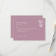 Presentamos nuestra encantadora Tarjeta de Respuesta de Boda, un componente esencial de la encantadora Suite de Boda Country Lace y Mason Jar Flowers. Esta tarjeta de respuesta presenta un delicado tono rosa adornado con elegante texto blanco, capturando la esencia romántica y el espíritu caprichoso de su día especial.
