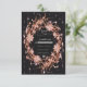 Tarjeta RSVP floral mística de lujo de color negro ornato, rosas, flores, personalizable floral, follaje y ramas en varios tonos de verde con estampado.