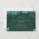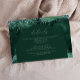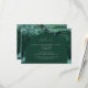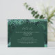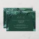 Este diseño presenta un arco verde oscuro sobre un fondo de acuarela de color verde esmeralda adornada con purpurina de imitación verde y plateado. La palabra "detalles" aparece en un guión elegante de caligrafía blanca, con el texto en blanco personalizable debajo. El diseño verde y plateado se repite en la parte posterior de la tarjeta.