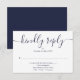 Una tarjeta de respuesta con escritura azul marino minimalista moderna simple con tus datos en tipografía chic. Diseñada por Thisisnotme©