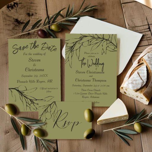 El Sencillo Rsvp de Olive Green Olive Branch es la elección perfecta para parejas que planeen una elegante boda italiana o de destino. Inspirado en la belleza rústica de la campiña italiana, este rsvp presenta una versión simplificada de una rama de olivo con un contorno de tinta negra y un bonito fondo verde oliva en la parte delantera. En la parte trasera, el hermoso verde oliva continúa con la información estándar del RSVP, junto con las opciones de comida para la recepción. Las aceitunas de plumón y las hojas exuberantes le dan un toque de sofisticación a cualquier suite de invitados a una boda. Ya sea que esté planeando una boda de destino de ensueño en Italia o una celebración de verano al aire libre, este rsvp hará una gran adición a su día especial.