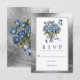Tarjeta De Confirmación De Asistencia Elegant Blue Roses Butterfly Silver Wedding