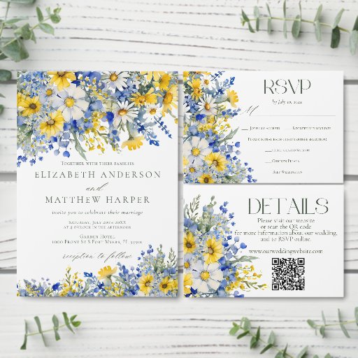 Dusty Blue and Sunny Yellow Wildflowers WeddingDiseñado por Margarita A