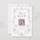 Tarjeta De Confirmación De Asistencia Elegant Burgundy Ornate Floral QR Code Wedding