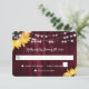 Elegant burgundy rustic floral wedding RSVP card featuring sunflowers and string lights against a rustic wood background. Perfect card design to complement your burgundy rustic wedding party inspired by sunflower flowers.