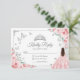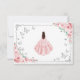 Pink silver and white Quinceanera RSVP reply card. Features brunette girl in ball gown dress, script font, silver butterflies, pink blush roses and tiara. Perfect for an elegant princess style glam celebration. Personalize with your own details.