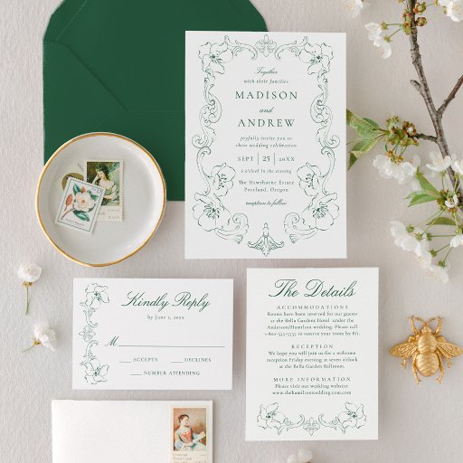 Elegant Green Ornate Floral WeddingDiseñado por Jessica Letterman