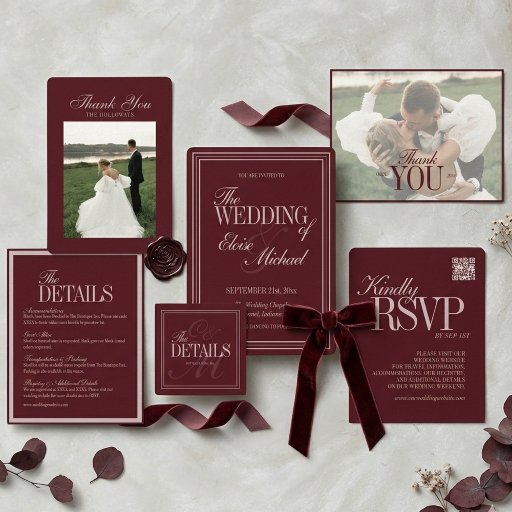 Elegant Script Burgundy Red Formal Wedding SuiteDiseñado por Molly H