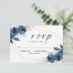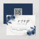 Tarjeta De Confirmación De Asistencia Elegant Script Navy Blue Floral QR Code Wedding