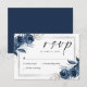 Tarjeta De Confirmación De Asistencia Elegant Script Navy Blue Floral Wedding