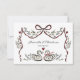 Add a touch of whimsical charm to your wedding invitations with this delightful response card. The design showcases a playful ribbon bow intertwined with delicate floral branches and charming red hearts, creating a festive and romantic frame. The sweet depiction of two swans at the bottom symbolizes enduring love. This card is perfect for a garden wedding, a rustic celebration, or any couple looking for a unique and memorable way to collect RSVPs.