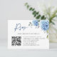 Tarjeta De Confirmación De Asistencia Elegante acuarela azul Hydrangea Boda código QR